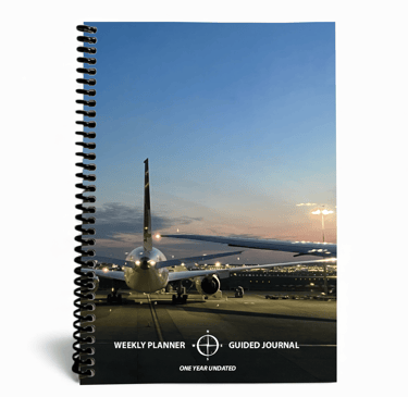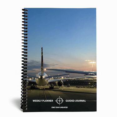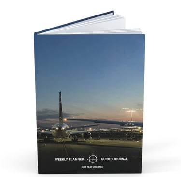 Weekly Planner & Guided Journal - 1 Year Undated - A5 Hardcover - Aircraft