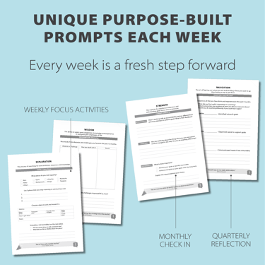Included are monthly check-ins, insightful quarterly reviews, and a comprehensive year-end reflection to keep your journey on track.